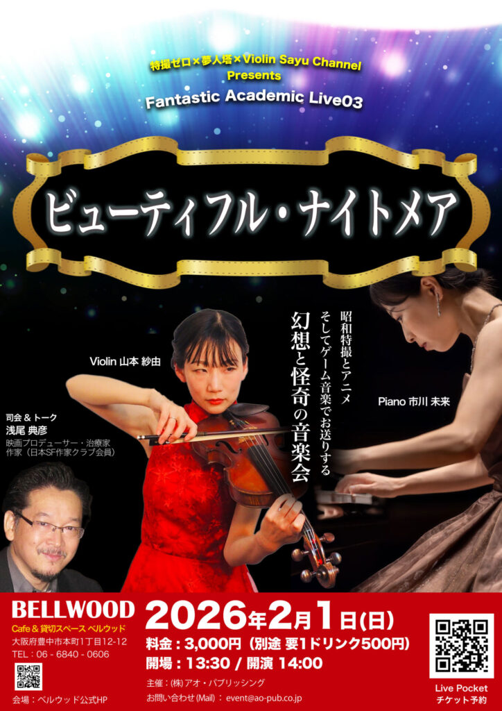 特撮アニメの名作をヴァイオリン&ピアノの生演奏とアカデミックなトークで楽しむ『Fantastic Academic Live』